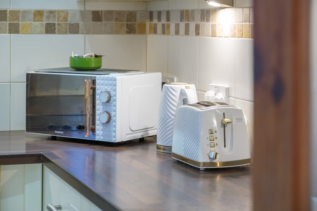 The property contains full equipped kitchen with all utensils and kitchen items like an oven, fridge, air fryer and pots and pans needed to make a nice home cooked meal.