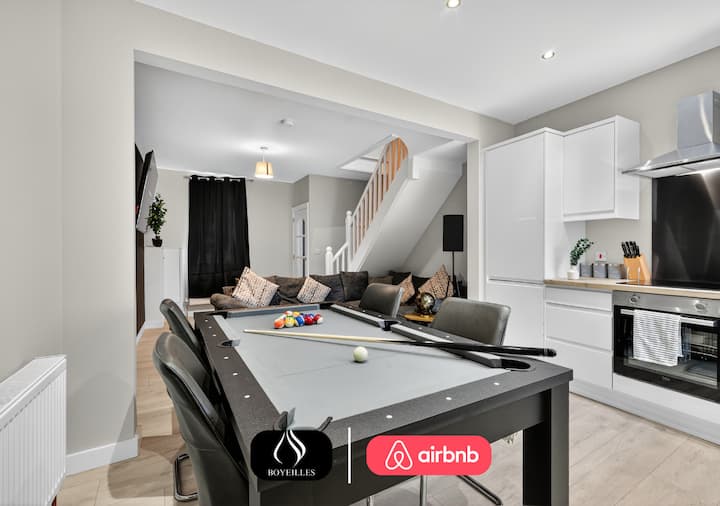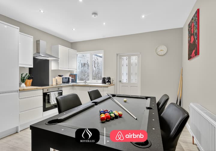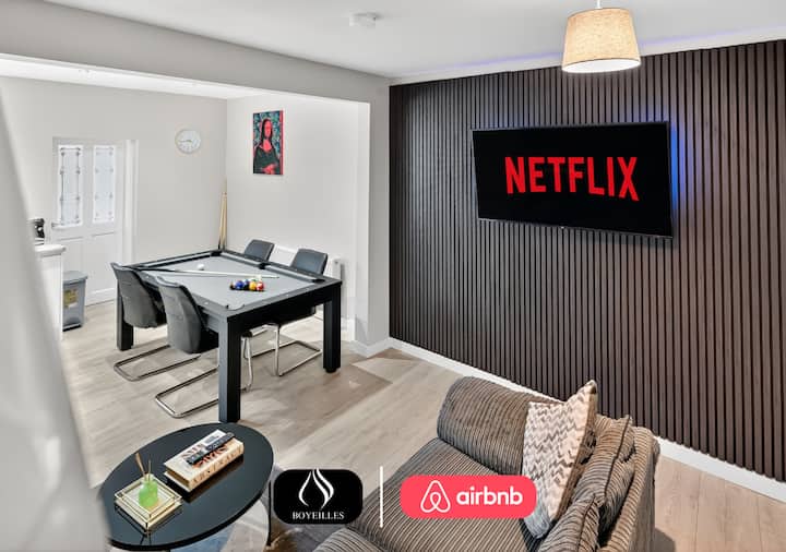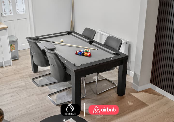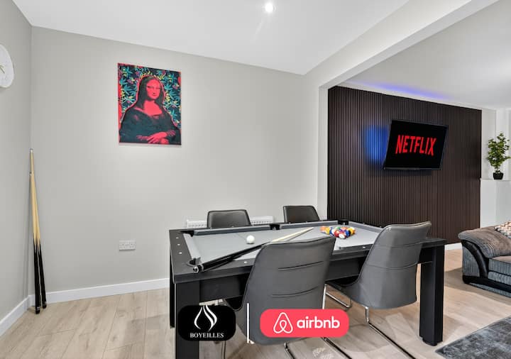 โญ ๐๐ผ๐บ๐ณ๐ผ๐ฟ๐๐ฎ๐ฏ๐น๐ฒ ๐๐ถ๐๐ถ๐ป๐ด ๐ฆ๐ฝ๐ฎ๐ฐ๐ฒ: Featuring a 5-seater L shaped soft couch, 55″ smart TV with Virgin Media, Disney+, Netflix, Prime Video and more, plus a 4-seater dining pool table in a spacious setting.