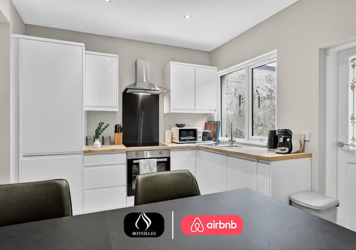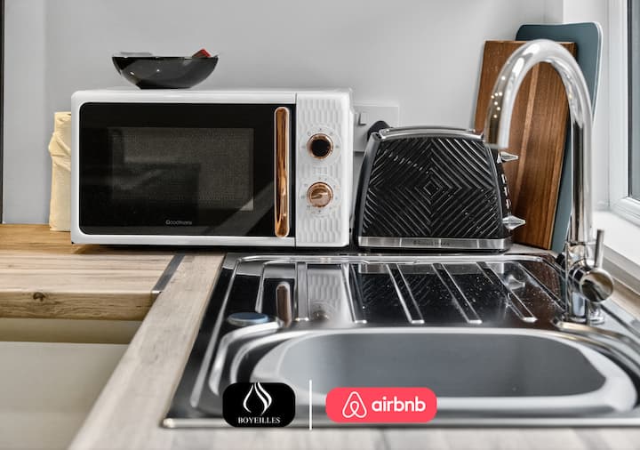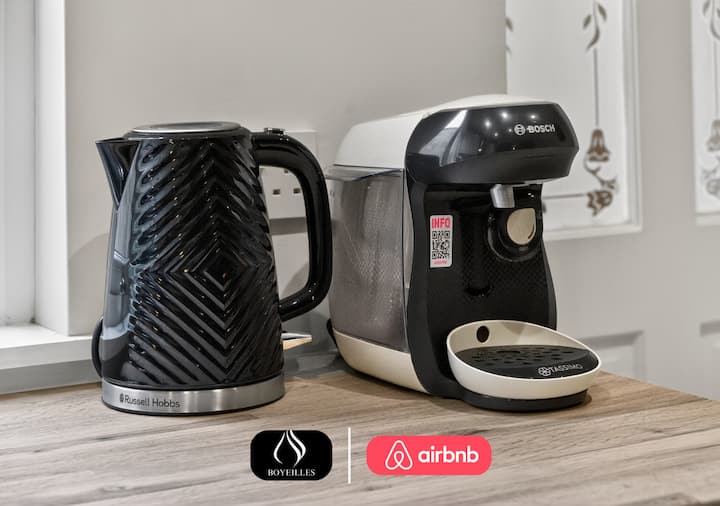 โญ ๐๐๐น๐น๐ ๐๐พ๐๐ถ๐ฝ๐ฝ๐ฒ๐ฑ ๐๐ถ๐๐ฐ๐ต๐ฒ๐ป: Complete with air fryer, coffee machine, cooker, oven, microwave, washing machine, and all essential cookware and utensils for a comfortable stay.
